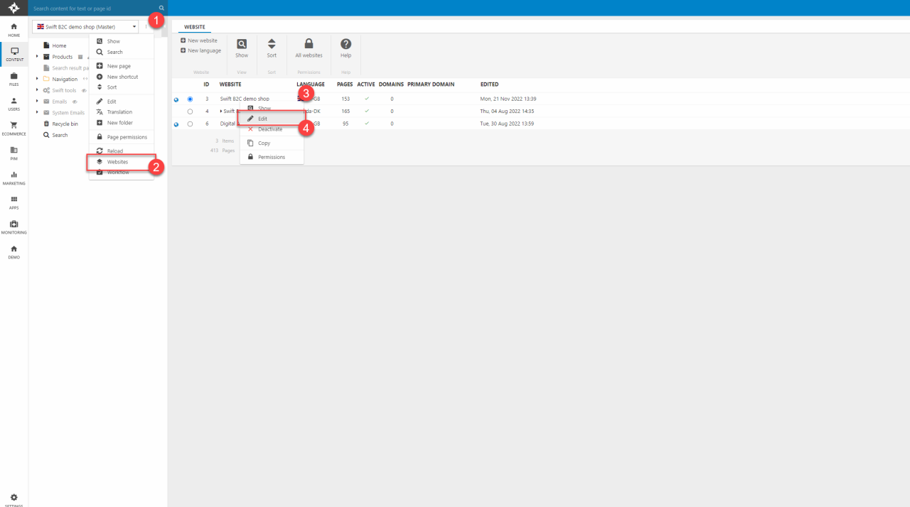 - Right click on the website you want to enter the settings of. In the dropdown, click on Edit