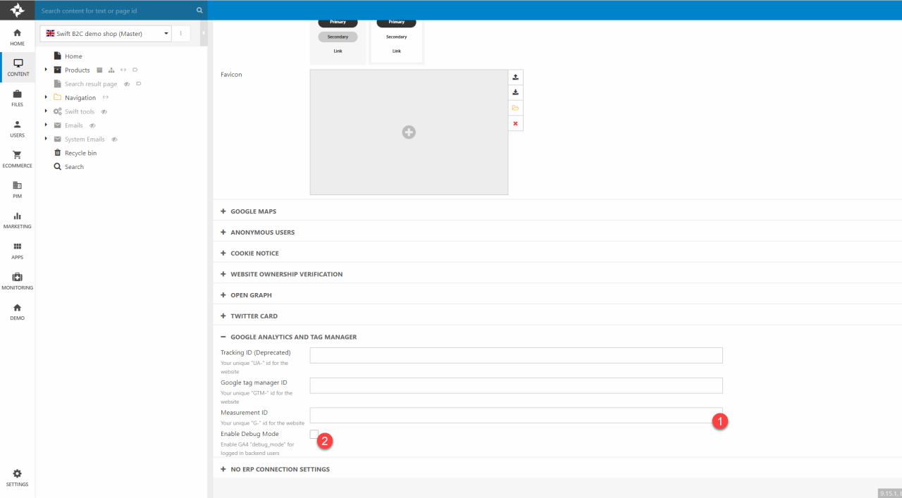 Before using Google analytics 4 and the Debug Mode you need to do a few changes in the DW backend. These should be done in the website settings.