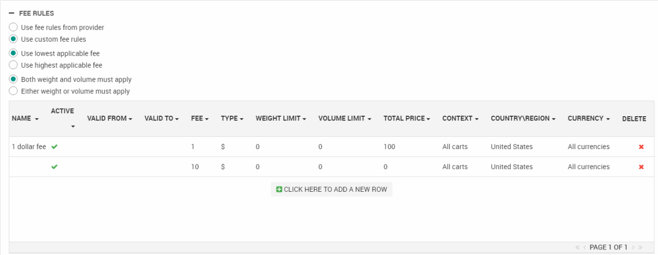 And for those we have the Fee Rules matrix (Figure 5.1), with which, you can assign shipping fees to orders based on various criteria, e.g. weight, volume, and so forth.