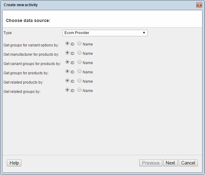 Figure 2.1 When used as a source provider the Ecom Provider can export either names or IDs - depending on your needs