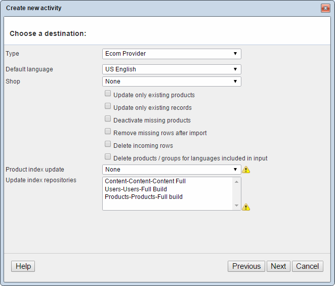 Figure 3.1 As a destination provider (for importing Ecommerce content), you have access to options identical with the Dynamicweb Provider options