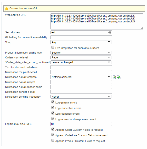 - Enter an encryption security key matching the secret defined in the DynamicwebConnector configuration file (true?)