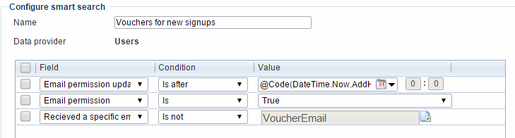 - Email permission updated – is after - @Code(DateTime.Now.AddHours(-24))