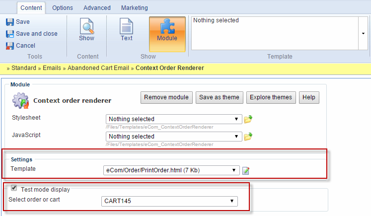 Your abandoned cart email can contain whatever you like – but in order to display the actual abandoned cart to the users, you must use the context order renderer module (Figure 3.1).