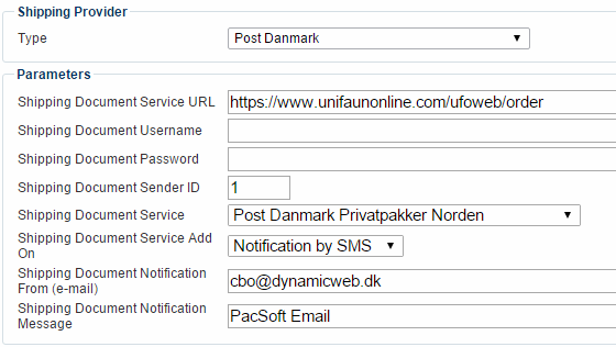 Figure 3.1 Configuring the Post Danmark PacSoft shipping provider