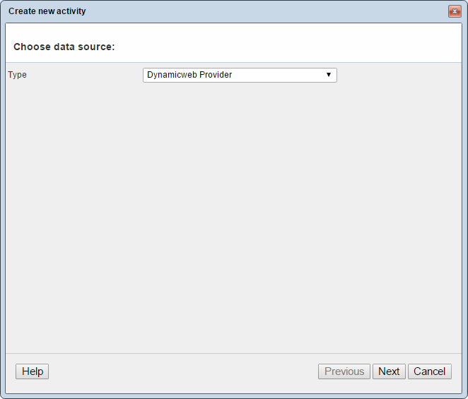 Now, the Dynamicweb Provider can be used access the entire Dynamicweb database, and so you can import all kinds of data into your solution. Most of the time, however, you will be importing products, product groups or related Ecommerce data, and so there are extra options available for that.