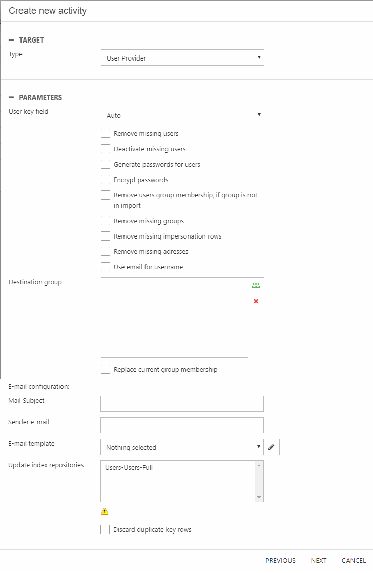 Please note, that Primary key columns must be provided for every table in an activity that is using the Dynamicweb Provider as a destination.