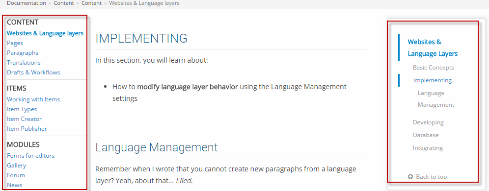 - Create and manage content – websites, language layers, pages and paragraphs – or exploit the power of items