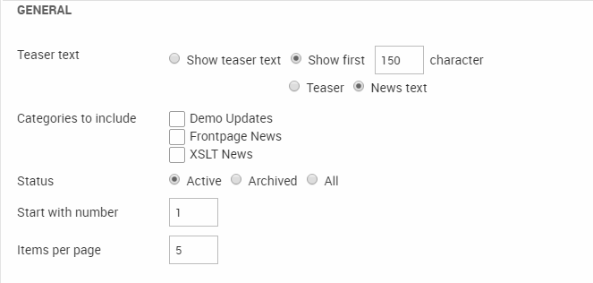 If you selected News list, you will have access to the General settings Figure 7.1).
