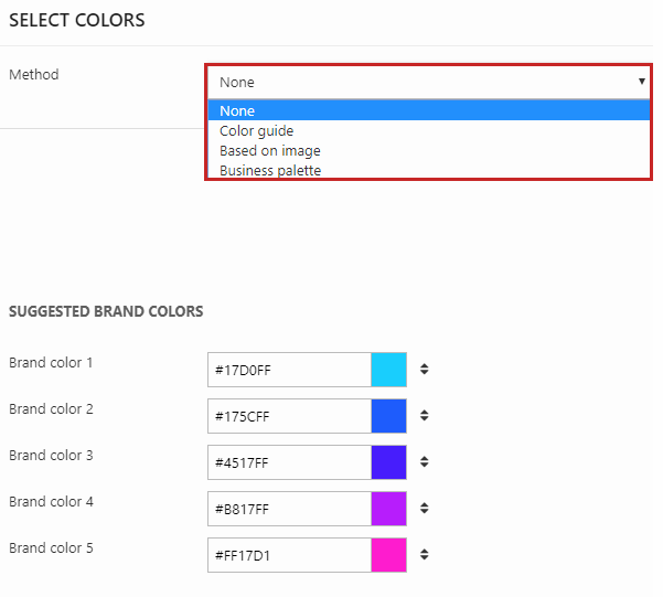 To generate brand colors (left side) you can choose between three different methods (Figure 2.1):