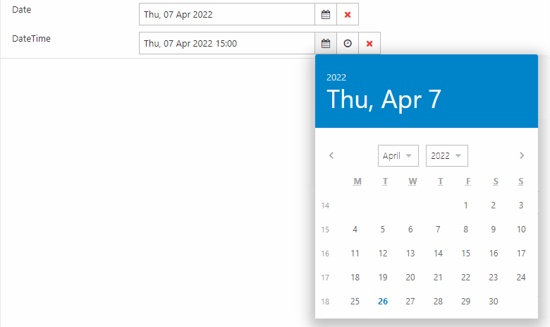 The Date and Date and Time fields are used to make it possible for an editor to select a date or date and time when creating an item (Figure 1.1).