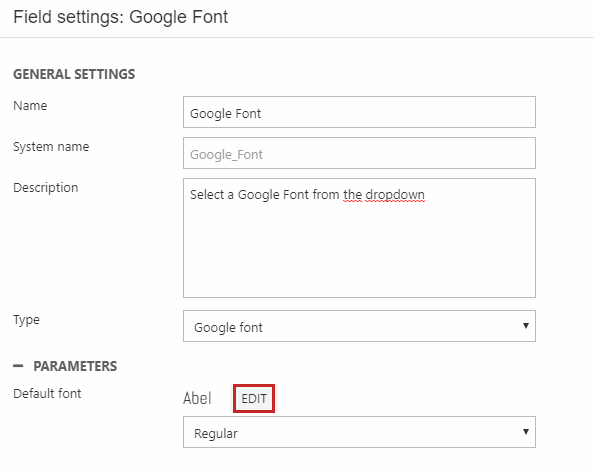A default font and font weight can be selected from the fields settings as shown in Figure 1.2.