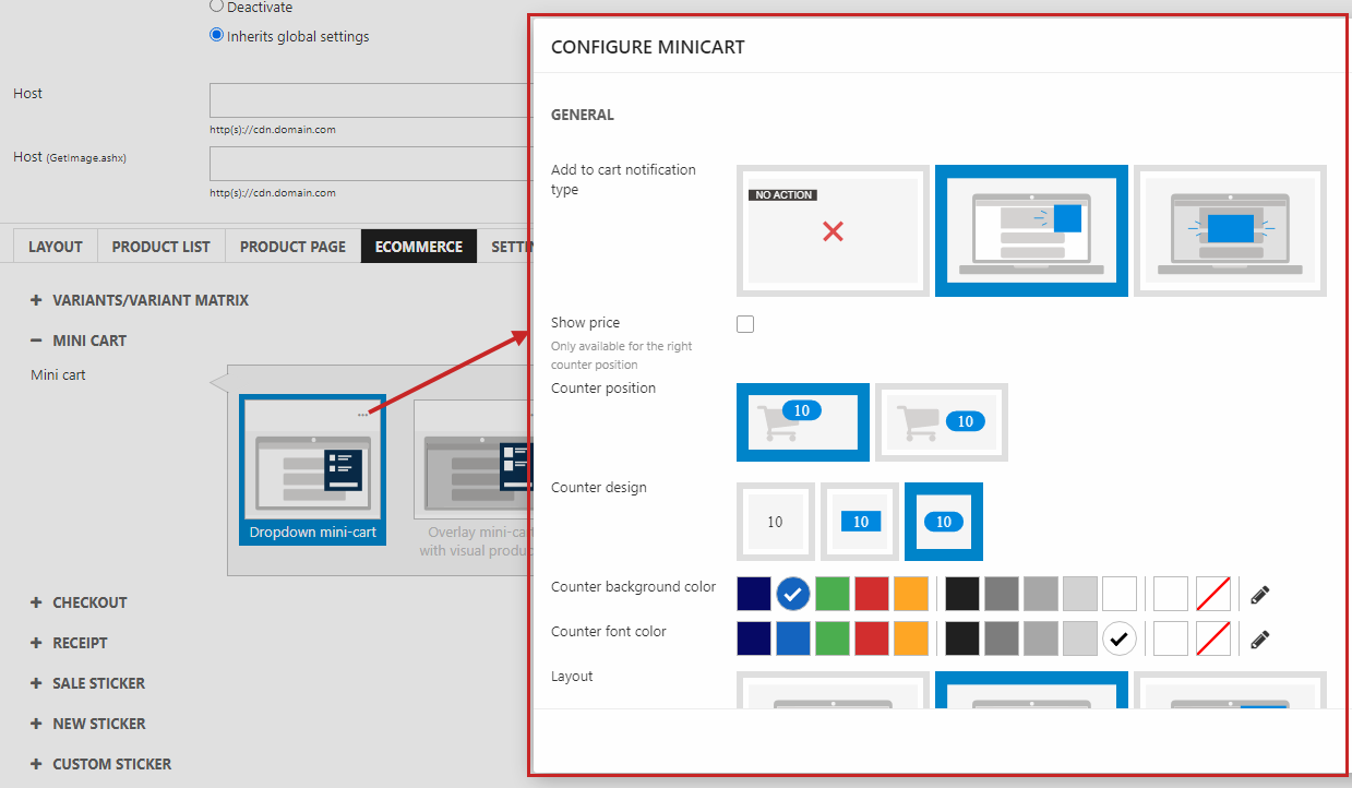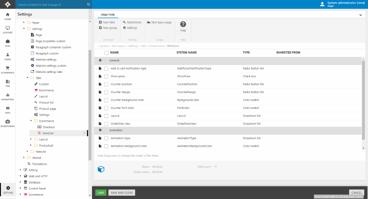 And it is this separate item type that actually contains the fields for the mini cart settings.