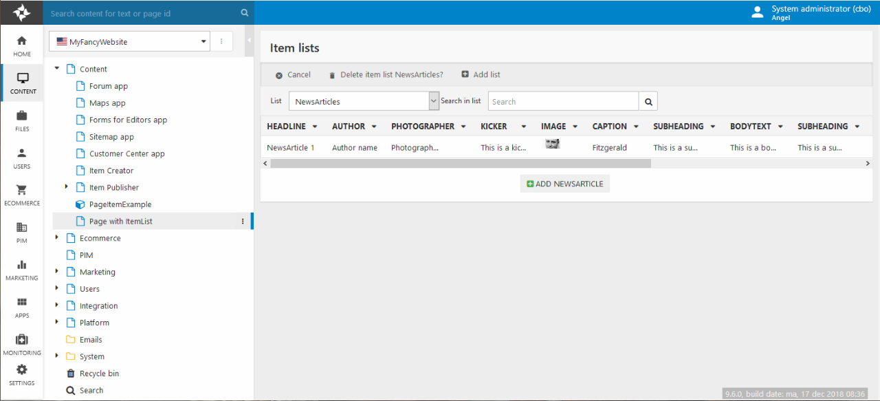 When the list has been created you can manage the items therein from the list view (Figure 1.2) – e.g. view, edit, delete or create new items of the chosen item type.