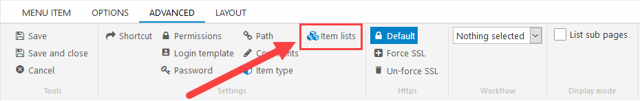 This opens the item lists interface – where you can create new lists: