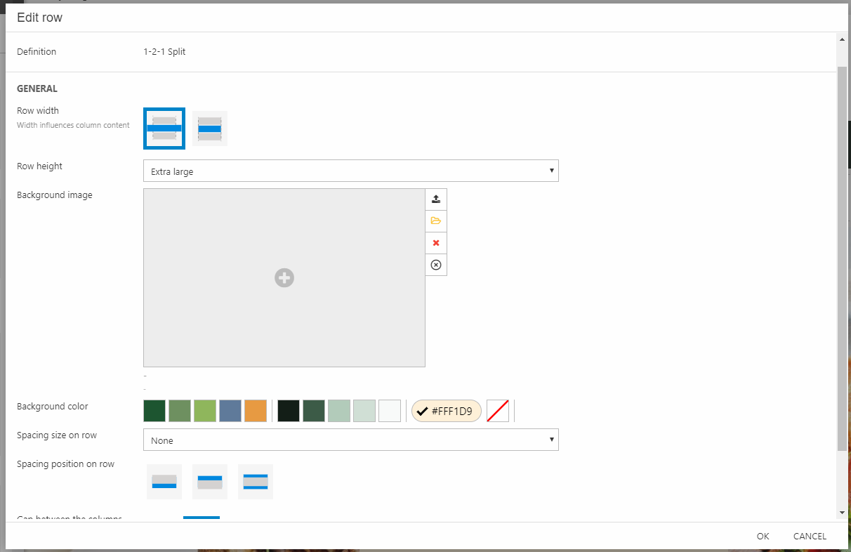 - ColumnCount – sets the number of columns in this row – how exactly they are spaced & shown is controlled using the row template