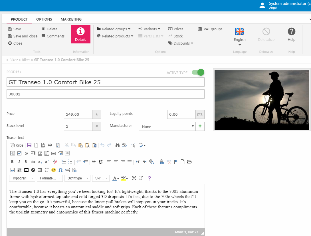 At this point is should probably be noted that products are very rich objects and Dynamicweb is a very flexible system which supports creating many different types of ecommerce websites with varying degrees of complexity. This means that we have many specialized tools which are not relevant for the majority of solutions – e.g. the combine products tool or the VAT groups tool – but you should not let that discourage you. With experience and this documentation, you will soon get the hang of everything and will be able to correctly determine which tools to use for each project.