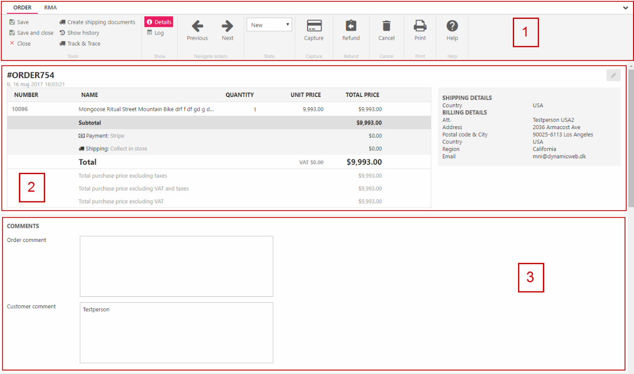 From the Cart and Order lists you can click each order to open the details view (Figure 1.1) – this view allows you to e.g.