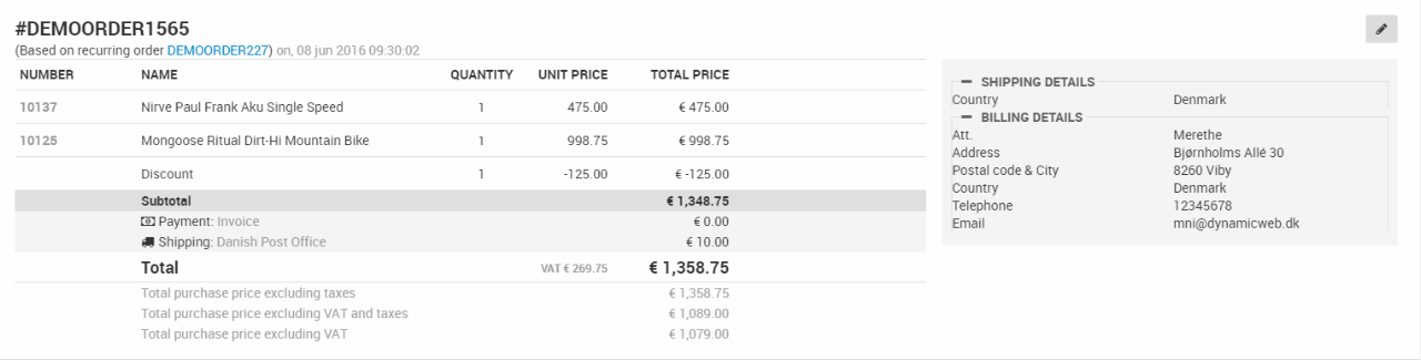 To edit an order, click the edit button in the order details view (Figure 9.1).
