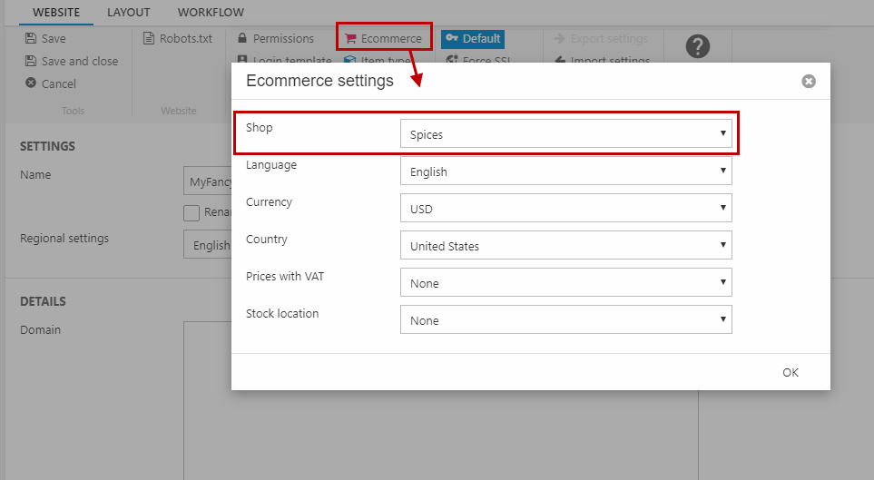 - Go to Settings > Ecommerce > Advanced configuration > General
