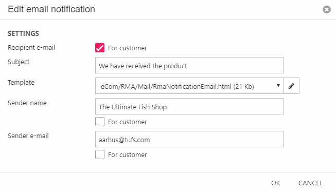 When working with RMAs, it can be useful to inform customers and employees alike when an RMA is created or closed, or when it enters a new state. Happily, the Dynamicweb RMA management system comes with a built-in engine for handling email notifications to customers and employees.