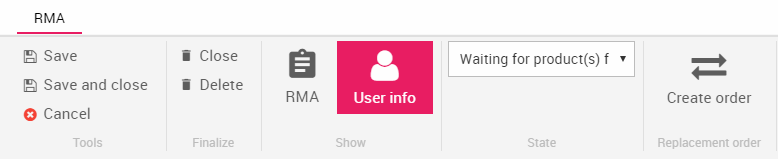 Click the user info button (Figure 6.1) in the toolbar to view and edit the extended information about the user who created the RMA.