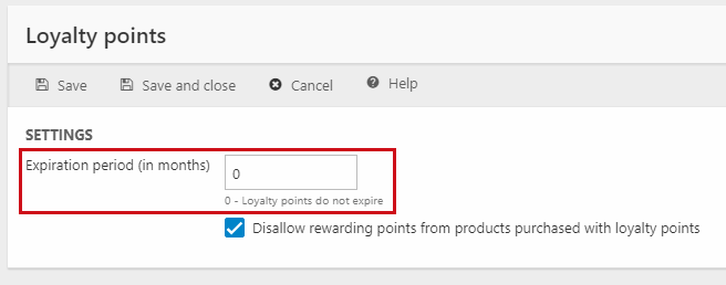 • Specify for how many months you want the loyalty points to be valid (Figure 7.1)