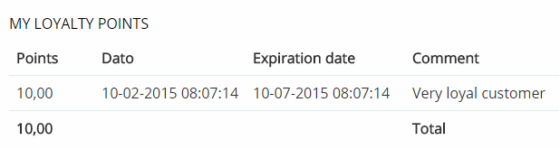 Loyalty points have their own dedicated app– called Loyalty Points – which can display loyalty point transactions in frontend to logged-in users.