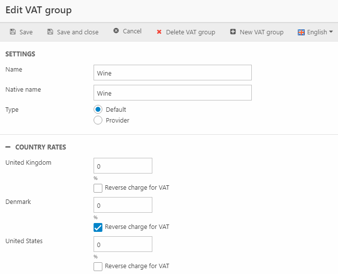 - As a fallback value – It is applied to all products unless a more specific VAT rate is defined, e.g. a Country VAT rate