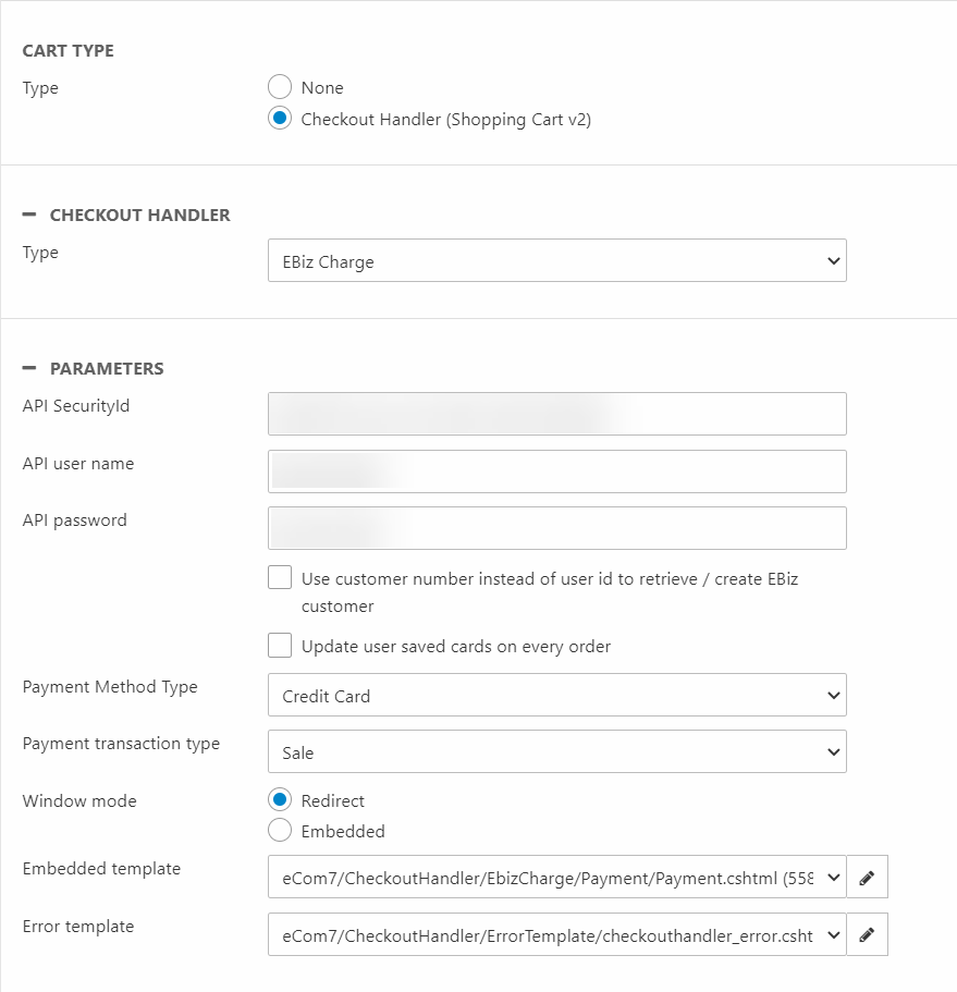 • Supply the API SecurityIdAPI username, and API password you got from EBizCharge