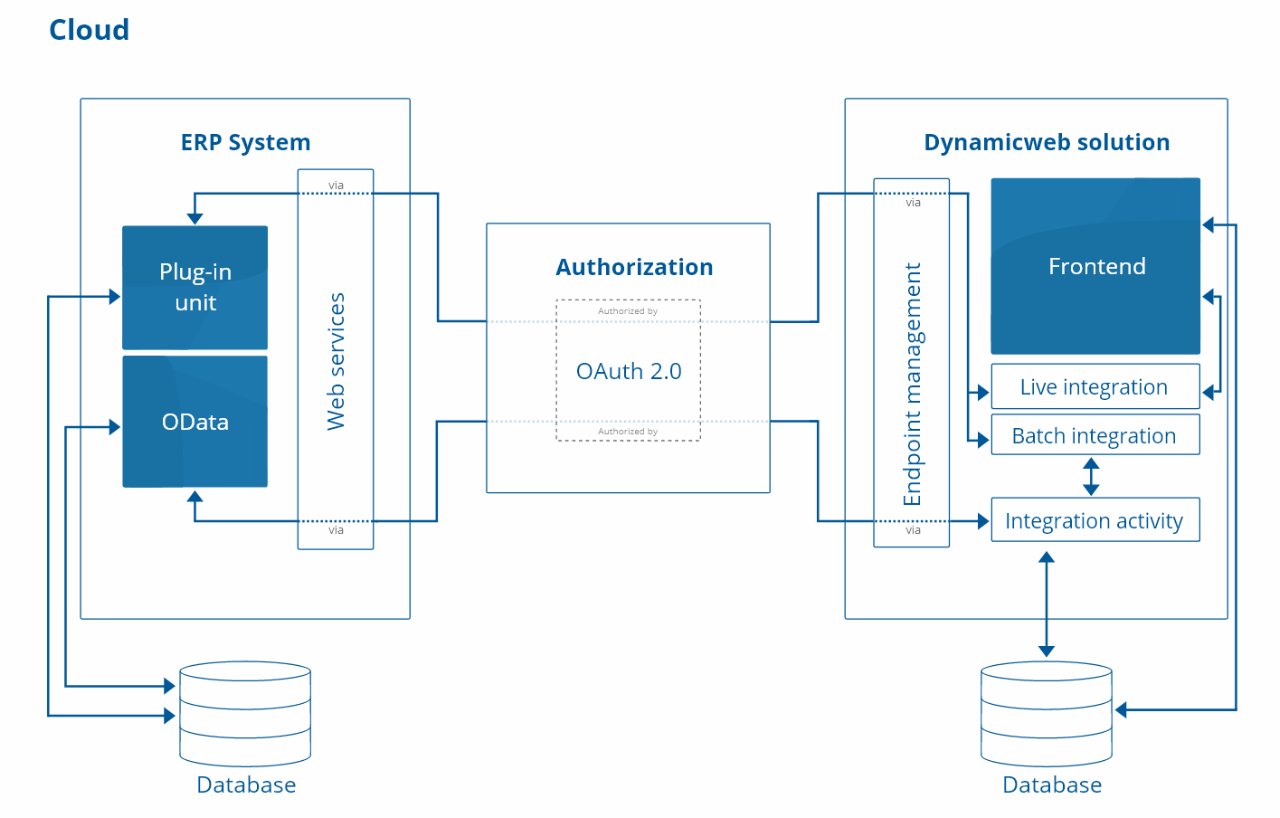 - A web service exposed by a Dynamicweb plug-in unit installed directly on the ERP