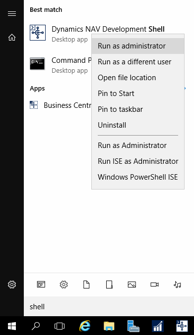 - Start the Dynamics NAV Administration Shell (Figure 3.1)