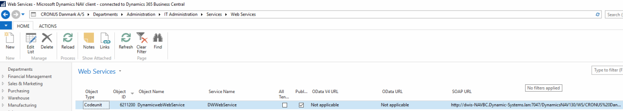 Copy the webservice URL and username and password for the BC user – you will need these when configuring the Connector service.