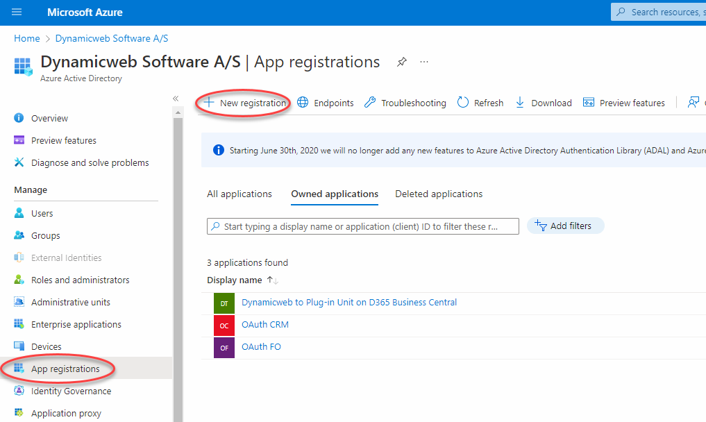 Next, go to Certificates & Secrets to create a client secret. This will be used later on in requests to the Dynamicweb service.