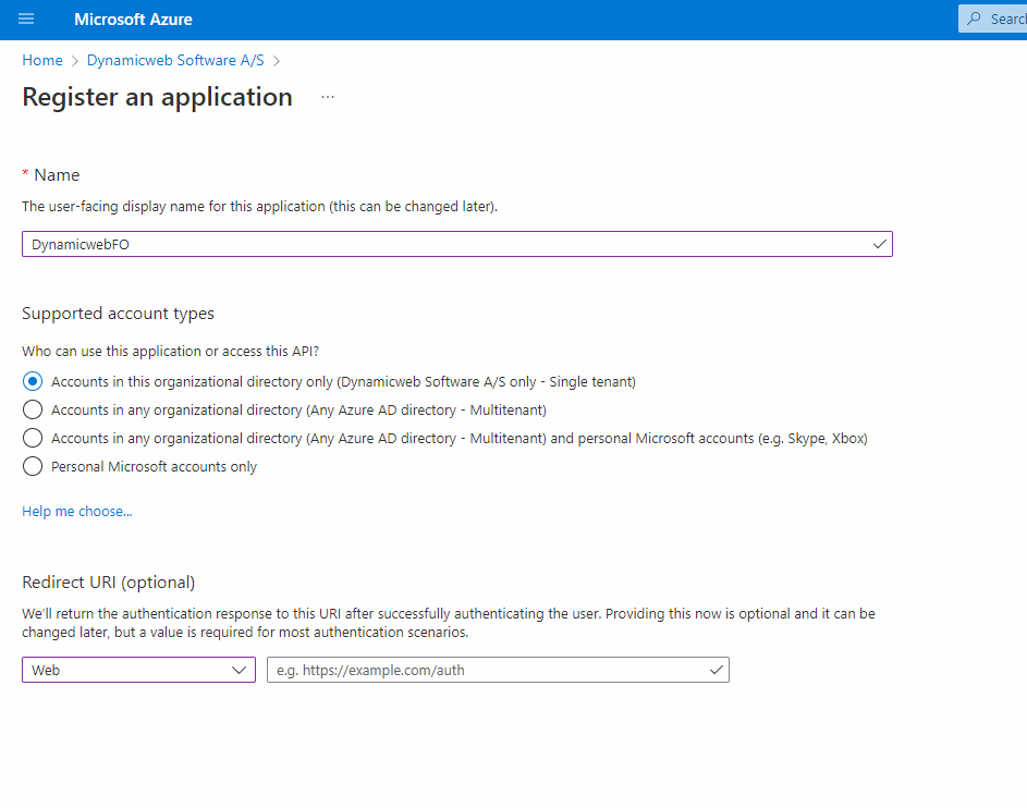- Choose supported account type - Single tenant (your organization only) is recommended.