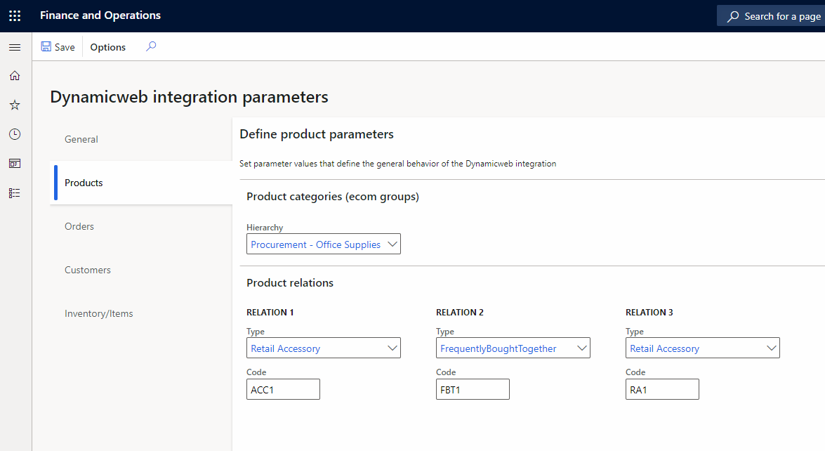 Used to define 1-3 default relation types to use in the Related products export endpoint. Select a relation from the standard Ax product relations list (Product information management – Setup – Relationships – Product relationship types). |