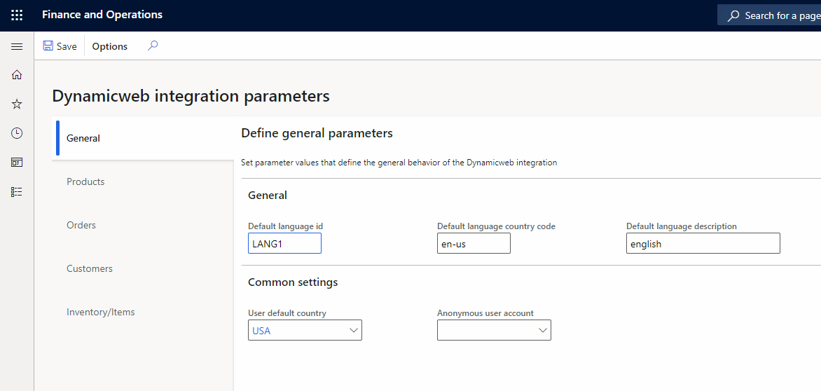 The General parameters define the general behavior of the Dynamicweb integration. They can be accessed from the General tab of the Dynamicweb integration parameters form (Figure 20.1).