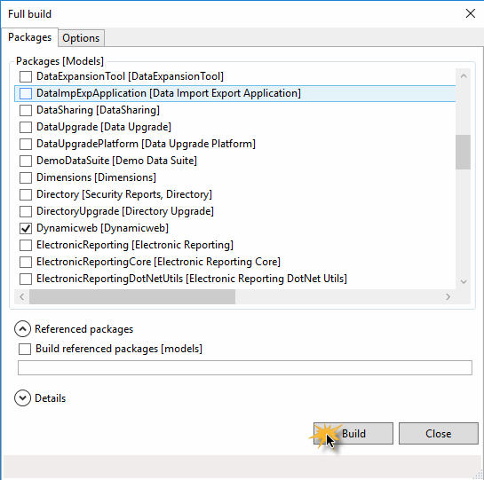 - Click Dynamics 365 – Build models... in the main menu of Visual Studio