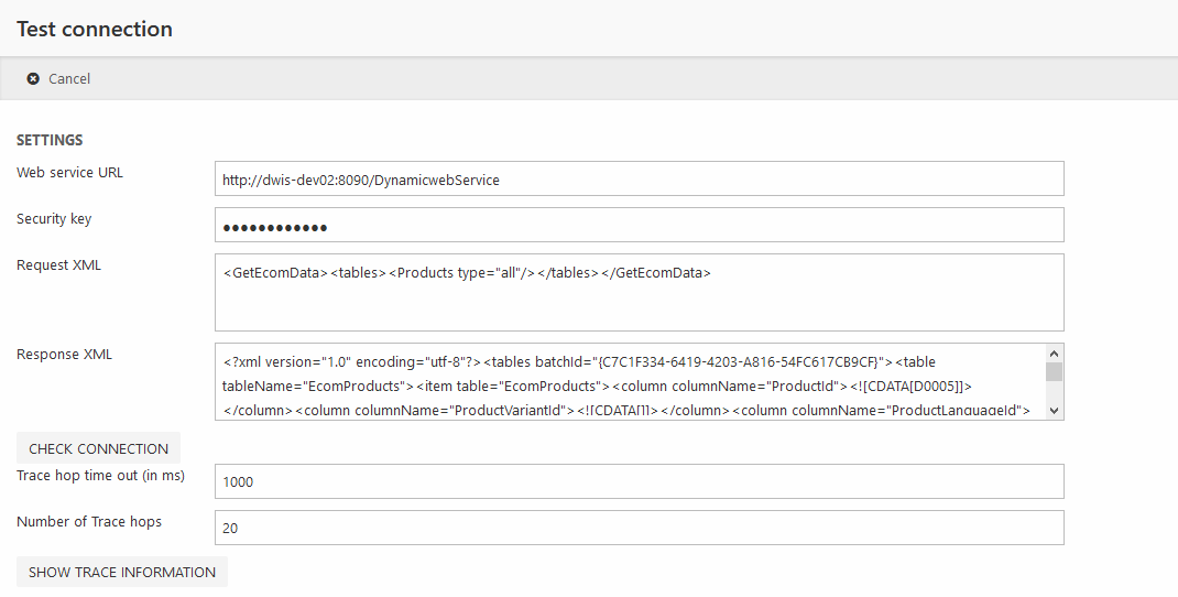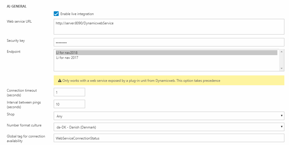 Enter the URL to the web service exposed by the Dynamicweb Connector |