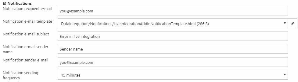 It consists of 6 sections, which are used to configure different aspects of a live integration: