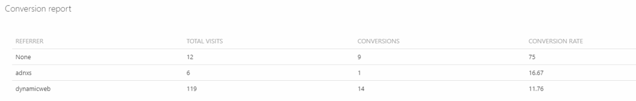 Figure 2.1 A conversion report showing the conversion rate of certain referrers