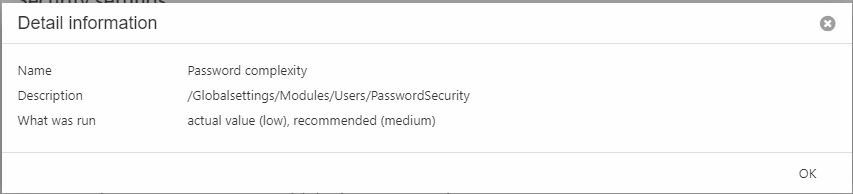 If you’re reviewing the security settings you will instead see the the actual value compared to the recommended value (Figure 5.3).