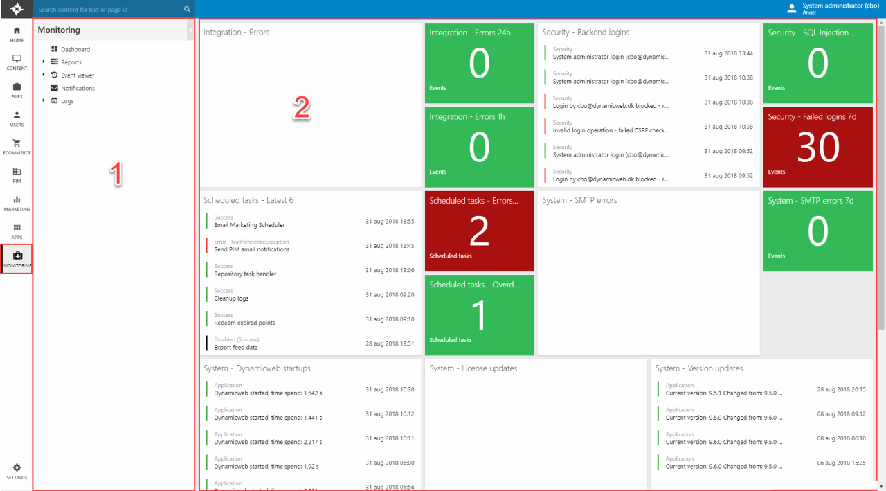 The monitoring center is only available for certain licenses – for more information please contact support@dynamicweb.dk