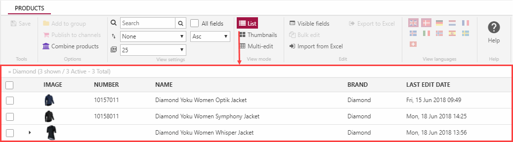 The List view mode (Figure 2.1) is optimized for showing product data in a list format – this is especially useful when looking for a particular product, or when comparing field values across many products.