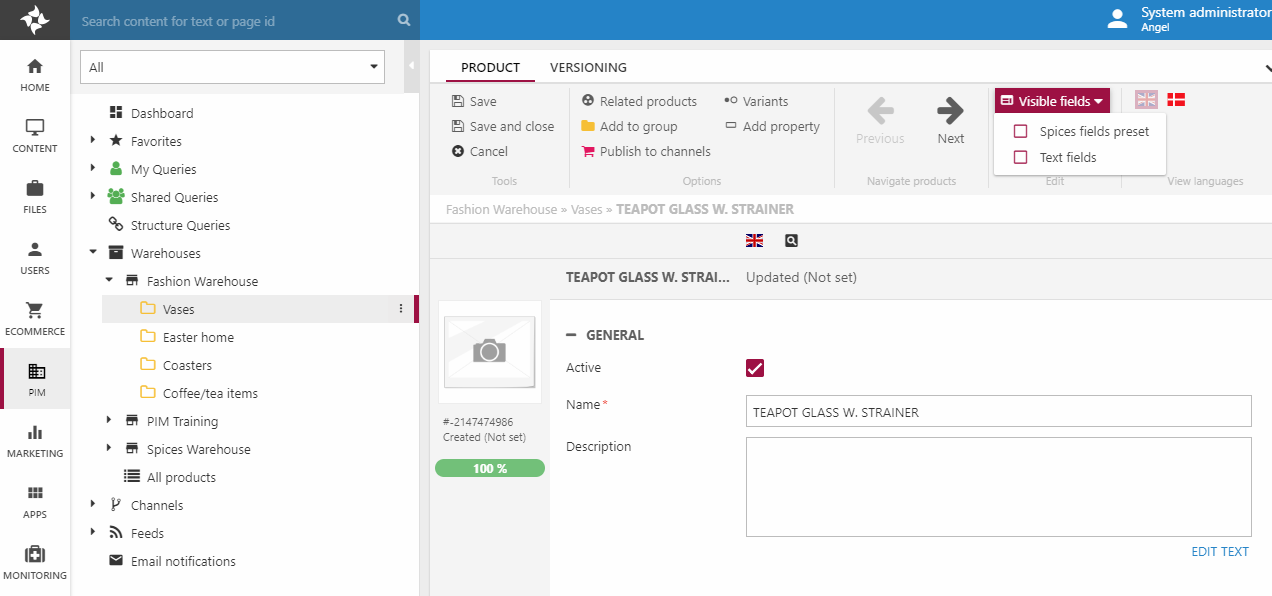 If you are translating descriptions, for instance, you only really need to see the Description and Teaser Text fields across language, and not, say, the price field.