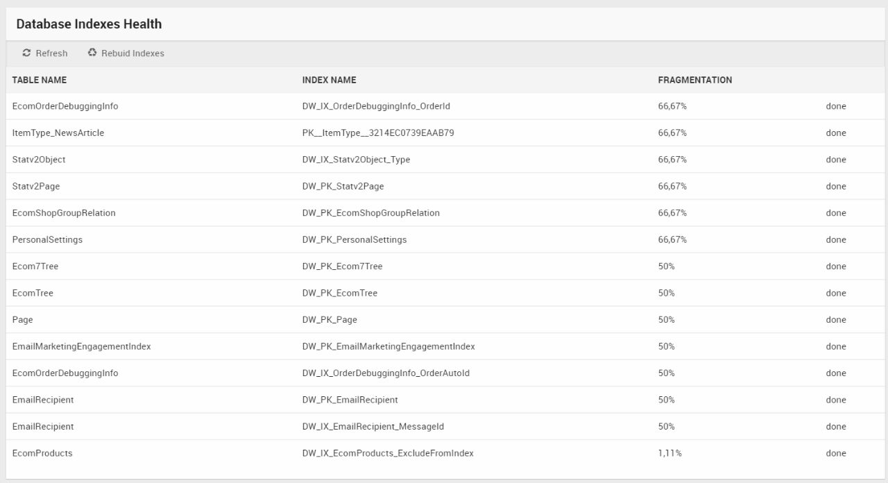The Database node contains a selection of tools for working with and manipulating the solution database – available to Administrator users only.