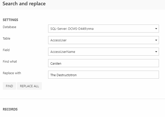 The Search & Replace tool lets you select a database, a table and a field – then search for and replace values therein (Figure 2.1).