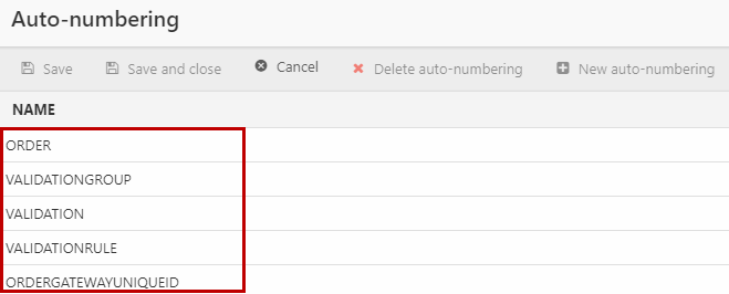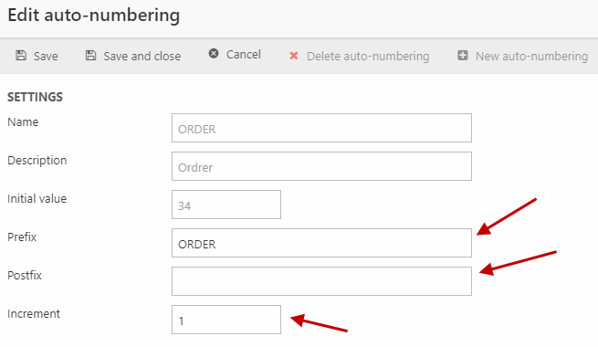 Click any of the auto-numbering schemes (e.g. "ORDER") to open the edit view (Figure 23.2)