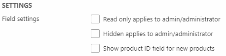 You can control product field behavior by going to Settings > Ecommerce > Advanced configuration > Fields and modifying the field settings (Figure 14.1).