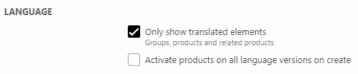 - Check the "Activate products on all language version on create" to create a version of the newly created product on all language versions (read more about what this setting does in this article)